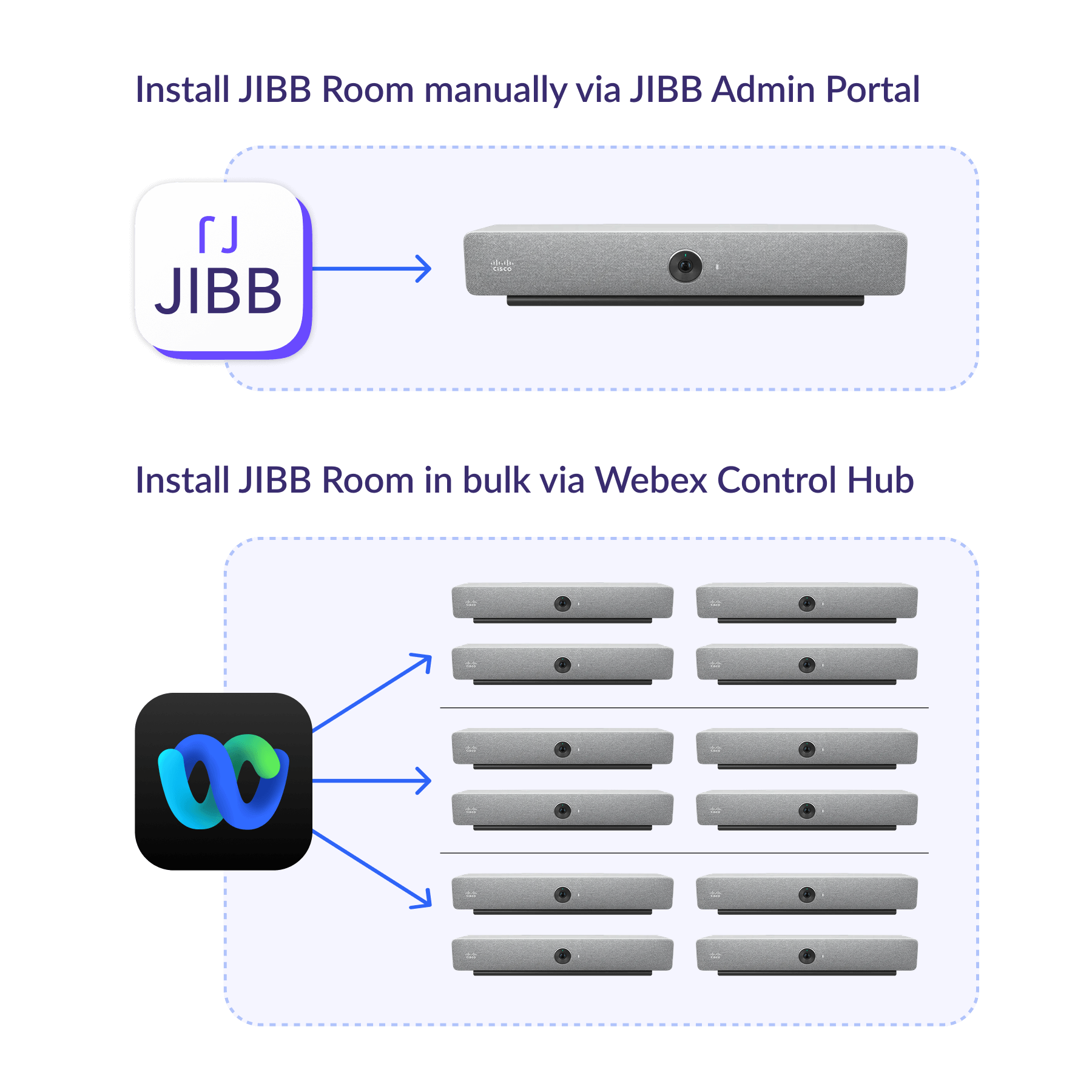 Bulk install JIBB Room with our Webex Workspace Integration to push JIBB Room to multiple devices across your organization.