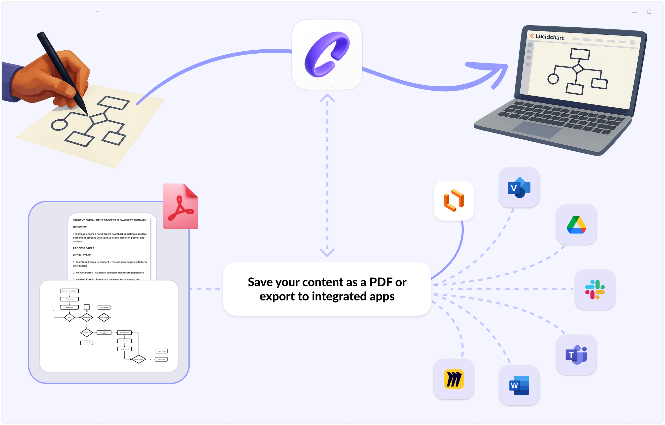 You can download it as a PDF, or export your diagram to editing tools like Lucidchart, or copy your smart summary into your docs and project boards.