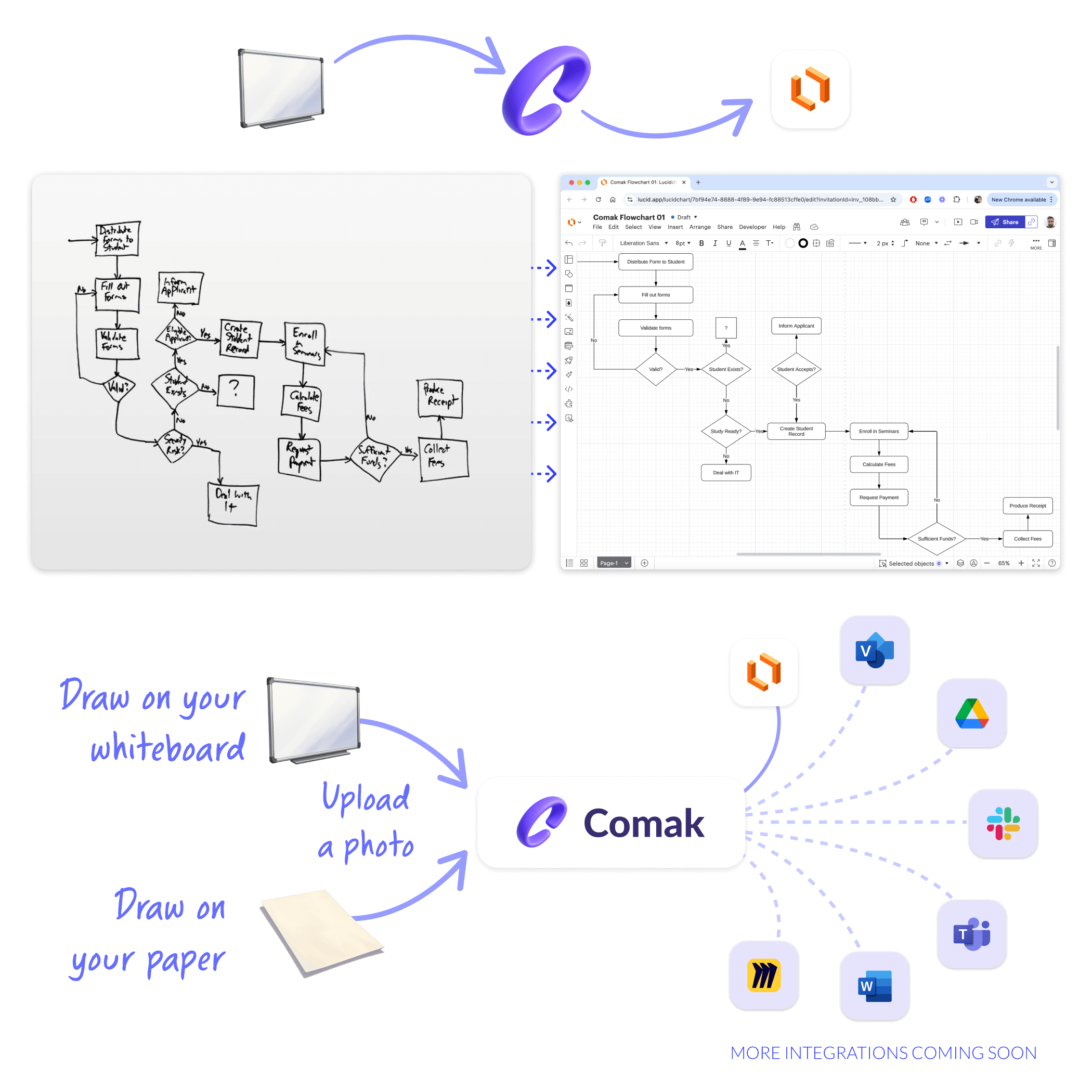 Comak turns sketches into editable diagrams or smart summaries you can plug into your workflow.