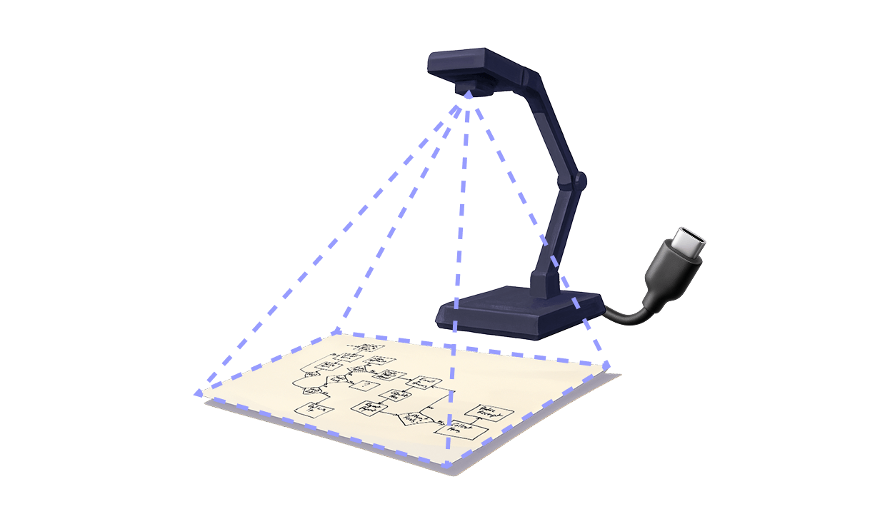Use any webcam or USB camera to digitize your whiteboard, paper, or flipchart.