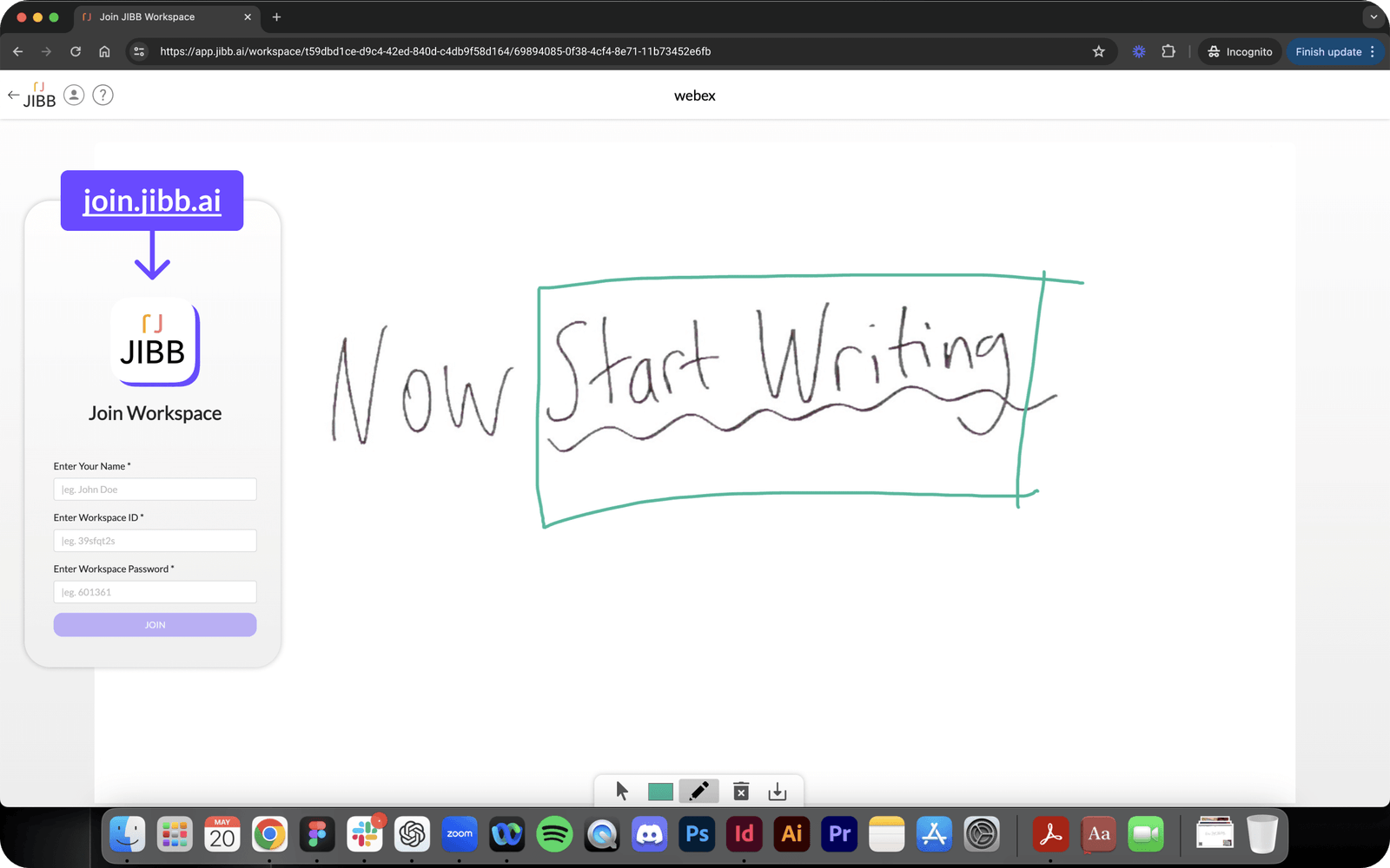 Share the 'join.jibb.ai' URL, ID & Password.